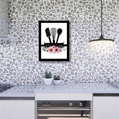 Quadro Decorativo Utensílios de Cozinha - Tamanho: A4 (20 x 30) / Acabamento: Película de acetato / Moldura: Madeira preta
