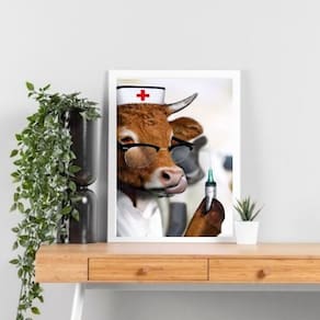 Quadro decorativo vaca veterinária 24x18cm Cor: moldura preta Informações do produto tire todas as suas dúvidas no descritivo abaixo: decoração para quarto, sala, cozinha, escritório, área gourmet e muito mais. Chega de paredes vazias medidas - cada peça tem 24x18cm a5 . Material do papel - papel fotográfico brilhante de altíssima resolução acabamento - todos os quadros são acompanhados de uma película de acetato para proteção da imagem. - os quadros são embalados de forma segura com plástico bolha com camada dupla de acordo com o tamanho dos quadros. Garantia - garantia de 3 meses. Meu quadro chegou. Como posso fixá-lo Você precisa apenas de um martelo e um prego, pois os quadros já vão acompanhados de penduradores. Esta é a forma mais indicada. Caso prefira, você pode utilizar uma fita dupla face neste caso, sugerimos de alta qualidade para evitar que descole e seu quadro caia . Como posso limpar meu quadro A limpeza é feita como um móvel comum da sua casa. Apenas um pano seco ou espanador são suficientes para tal Ean: 7891234531391