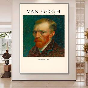 Quadro Decorativo Van Gogh Self Portrait Moldura Preta - 84x54cm -
