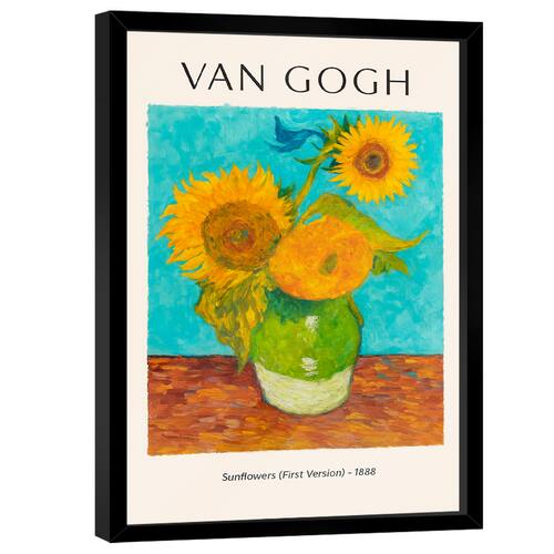 Quadro Decorativo Van Gogh Sunflowers Moldura Preta e Vidro - 118x78cm -
