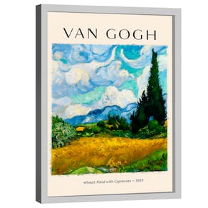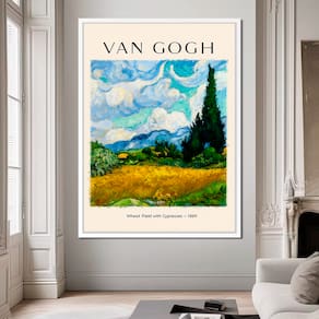 Quadro Decorativo Van Gogh Wheat Field With Cypresses Moldura Branca e Vidro - 180x105cm -