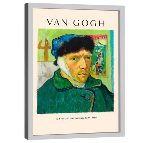 Quadro Decorativo Vang Gogh Self Portrait With Bandaged Ear Moldura Branca - 84x54cm -