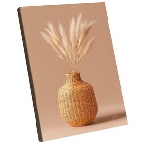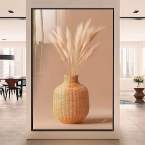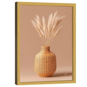 Quadro Decorativo Vaso e Folhas de Trigo Minimalista Moldura Dourada - 84x54cm -