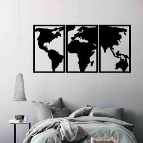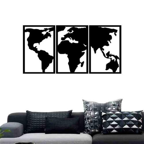 O Quadro Decorativo Vazado Mapa Mundi Político irá trazer um toque requintado para o seu ambiente. O quadro é produzido em MDF com 6mm de espessura cortado a laser. Suas bordas na cor preta é feito pela própria máquina de corte a laser, dando o acabamento impecável. O quadro é composto por três peças que juntas formam uma linda imagem. Para deixá-los perfeitos em sua parede deixe um espaço com cerca de 1cm entre uma peça e outra, assim você terá um resultado fantástico. O quadro se encaixa bem em qualquer ambiente, com sofisticação e design, esse quadro é a peça chave para tornar seu lar mais aconchegante.