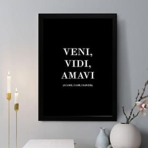 Quadro decorativo veni vidi amavi 24x18cm Cor: moldura branca Informações do produto tire todas as suas dúvidas no descritivo abaixo: decoração para quarto, sala, cozinha, escritório, área gourmet e muito mais. Chega de paredes vazias medidas - cada peça tem 24x18cm a5 . Material do papel - papel fotográfico brilhante de altíssima resolução acabamento - todos os quadros são acompanhados de uma película de acetato para proteção da imagem. - os quadros são embalados de forma segura com plástico bolha com camada dupla de acordo com o tamanho dos quadros. Garantia - garantia de 3 meses. Meu quadro chegou. Como posso fixá-lo Você precisa apenas de um martelo e um prego, pois os quadros já vão acompanhados de penduradores. Esta é a forma mais indicada. Caso prefira, você pode utilizar uma fita dupla face neste caso, sugerimos de alta qualidade para evitar que descole e seu quadro caia . Como posso limpar meu quadro A limpeza é feita como um móvel comum da sua casa. Apenas um pano seco ou espanador são suficientes para tal