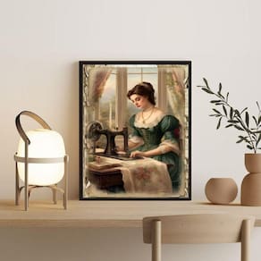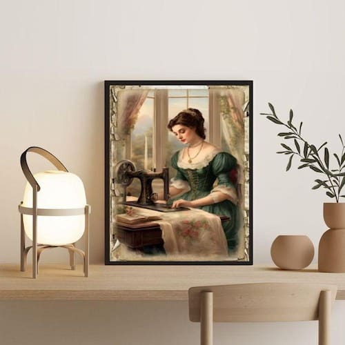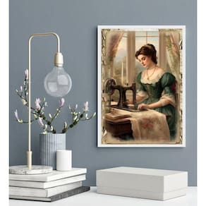 Quadro Decorativo Vintage Costureira 24X18Cm - Com Vidro