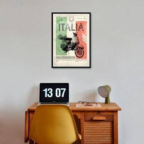 Quadro decorativo vintage vespa itália 45x34cm Moldura: madeira branca Informações do produto tire todas as suas dúvidas no descritivo abaixo: decoração para quarto, sala, cozinha, escritório, área gourmet e muito mais. Chega de paredes vazias. Medidas - cada peça tem 45x34cm a3 . Material do papel - papel fotográfico brilhante de altíssima resolução acabamento - todos os quadros são acompanhados de uma película de acetato para proteção da imagem. - os quadros são embalados de forma segura com plástico bolha com camada dupla de acordo com o tamanho dos quadros. Garantia - garantia de 3 meses. Meu quadro chegou. Como posso fixá-lo Você precisa apenas de um martelo e um prego, pois os quadros já vão acompanhados de penduradores. Esta é a forma mais indicada. Caso prefira, você pode utilizar uma fita dupla face neste caso, sugerimos de alta qualidade para evitar que descole e seu quadro caia . Como posso limpar meu quadro A limpeza é feita como um móvel comum da sua casa. Apenas um pano seco ou espanador são suficientes para tal