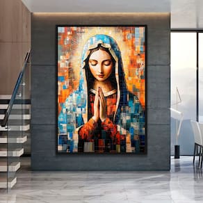 Quadro Decorativo Virgem Maria Em Grid Art Moldura Branca - 84x54cm -