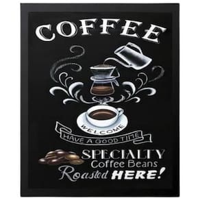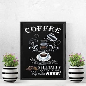 O Quadro Decorativo Welcome Coffee 24 X 18 Cm A5 é perfeito para a decorar o seu ambiente de forma moderna e charmosa. O quadro é fácil de instalar pois vai acompanhado de pendurador e simples de limpar, apenas um pano seco ou espanador é suficiente para manter o seu quadro conservado. Características: - O papel fotográfico possui alta resolução - Acompanha vidro para proteção da imagem - Fácil de instalar Especificações Marca: Quadros On-Line Temática do quadro: Frase Modelo: Welcome Coffee Material do papel: Fotográfico brilhante Material da moldura: Madeira Acompanha moldura: Sim Acompanha vidro: Sim Acompanha pendurador: Sim Cor da moldura: Preta Medidas: 24 x 18 Cm : 3 meses Itens inclusos 01 Quadro Decorativo Welcome Coffee 24 X 18 Cm Sobre a Quadros On-Line Criada há mais de 30 anos em Belo Horizonte, a Quadros On-Line é uma referência na cidade, sempre prezando a criação de produtos de alta qualidade e excelência no atendimento. Além dos artigos decorativos, confecciona e comercializa obras de arte também.