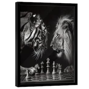 Quadro Decorativo Xadrez Felino Moldura Preta e Vidro - 118x78cm -
