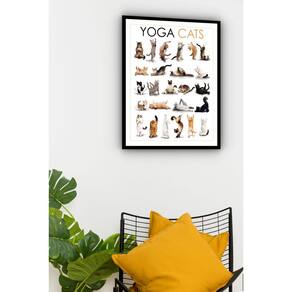 Quadro Decorativo Yoga Gatos - 70x50cm - Cor: Moldura Branca