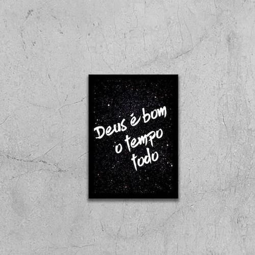 Quadro Deus É Bom O Tempo Todo 24X18Cm Moldura: madeira branca Informações do produto Decoração para quarto, sala, cozinha, escritório, área gourmet e muito mais. Chega de paredes vazias. Medidas - cada peça tem 24x18cm a5 . Material do papel - papel fotográfico brilhante de altíssima resolução Acabamento - todos os quadros são acompanhados de uma película de acetato para proteção da imagem. - moldura em madeira maciça na cor branca e pendurador móvel que pode ser retirado facilmente caso deseje fixar com fita dupla face. - os quadros são embalados de forma segura com plástico bolha com camada dupla de acordo com o tamanho dos quadros. - de 3 meses Meu quadro chegou. Como posso fixá-lo: Você precisa apenas de um martelo e um prego, pois os quadros já vão acompanhados de penduradores. Esta é a forma mais indicada. Caso prefira, você pode utilizar uma fita dupla face neste caso, sugerimos de alta qualidade para evitar que descole e seu quadro caia . Como posso limpar meu quadro: A limpeza é feita como um móvel comum da sua casa. Apenas um pano seco ou espanador são suficientes para tal Marca: Não Informado