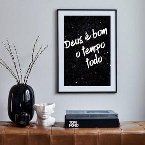 Quadro deus é bom o tempo todo - 60x48cm Moldura: madeira preta Informações do produto tire todas as suas dúvidas no descritivo abaixo: decoração para quarto, sala, cozinha, escritório, área gourmet e muito mais. Chega de paredes vazias medidas - cada peça tem 60x48cm . Material do papel - papel fotográfico brilhante de altíssima resolução acabamento - todos os quadros são acompanhados de vidro para proteção da imagem. - moldura em madeira maciça na cor preta ou branca conforme produto escolhido e pendurador. - paspatur branco com 7cm de largura - os quadros são embalados de forma segura com plástico bolha com camada dupla de acordo com o tamanho dos quadros. - de 3 meses. Meu quadro chegou. Como posso fixá-lo Você precisa apenas de um martelo e um prego, pois os quadros já vão acompanhados de penduradores. Esta é a forma mais indicada. Como posso limpar meu quadro A limpeza é feita como um móvel comum da sua casa. Apenas um pano seco ou espanador são suficientes para tal Marca: Não Informado