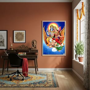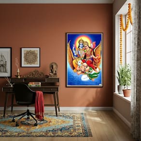 Quadro Deus Hindu Vishnu e A Deusa Lakshmi Garuda - 70x50cm - Cor: Moldura Preta