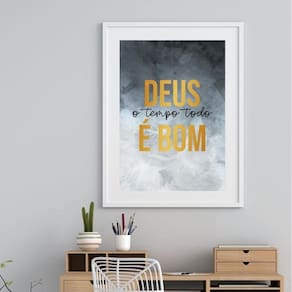 Quadro deus o tempo todo é bom - 60x48cm Moldura: madeira branca Informações do produto tire todas as suas dúvidas no descritivo abaixo: decoração para quarto, sala, cozinha, escritório, área gourmet e muito mais. Chega de paredes vazias medidas - cada peça tem 60x48cm . Material do papel - papel fotográfico brilhante de altíssima resolução acabamento - todos os quadros são acompanhados de vidro para proteção da imagem. - moldura em madeira maciça na cor preta ou branca conforme produto escolhido e pendurador. - paspatur branco com 7cm de largura - os quadros são embalados de forma segura com plástico bolha com camada dupla de acordo com o tamanho dos quadros. Garantia - garantia de 3 meses. Meu quadro chegou. Como posso fixá-lo Você precisa apenas de um martelo e um prego, pois os quadros já vão acompanhados de penduradores. Esta é a forma mais indicada. Como posso limpar meu quadro A limpeza é feita como um móvel comum da sua casa. Apenas um pano seco ou espanador são suficientes para tal