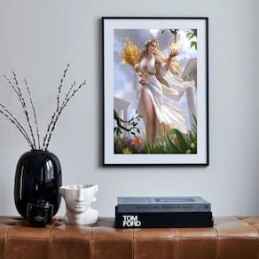 Quadro deusa da agricultura- deméter - 60x48cm Moldura: madeira branca Informações do produto tire todas as suas dúvidas no descritivo abaixo: decoração para quarto, sala, cozinha, escritório, área gourmet e muito mais. Chega de paredes vazias medidas - cada peça tem 60x48cm . Material do papel - papel fotográfico brilhante de altíssima resolução acabamento - todos os quadros são acompanhados de vidro para proteção da imagem. - moldura em madeira maciça na cor preta ou branca conforme produto escolhido e pendurador. - paspatur branco com 7cm de largura - os quadros são embalados de forma segura com plástico bolha com camada dupla de acordo com o tamanho dos quadros. - de 3 meses. Meu quadro chegou. Como posso fixá-lo Você precisa apenas de um martelo e um prego, pois os quadros já vão acompanhados de penduradores. Esta é a forma mais indicada. Como posso limpar meu quadro A limpeza é feita como um móvel comum da sua casa. Apenas um pano seco ou espanador são suficientes para tal Marca: Não Informado