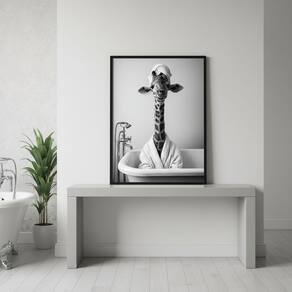 Quadro Divertido Banheiro Dona Girafa 33x24cm Mold Branca