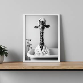 Quadro Divertido Banheiro Dona Girafa 33x24cm Mold Preta Vidro