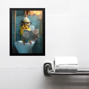 Quadro divertido banheiro periquito lendo jornal 33x24cm - com vidro Cor: moldura preta Informações do produto tire todas as suas dúvidas no descritivo abaixo: decoração para quarto, sala, cozinha, escritório, área gourmet e muito mais. Chega de paredes vazias medidas - cada peça tem 33x24cm a4 . Material do papel - papel fotográfico brilhante de altíssima resolução acabamento - todos os quadros são acompanhados de vidro para proteção da imagem. - moldura em madeira maciça na cor preta ou branca conforme produto escolhido e pendurador . - os quadros são embalados de forma segura com plástico bolha com camada dupla de acordo com o tamanho dos quadros. - de 3 meses. Meu quadro chegou. Como posso fixá-lo Você precisa apenas de um martelo e um prego, pois os quadros já vão acompanhados de penduradores. Esta é a forma mais indicada. Como posso limpar meu quadro A limpeza é feita como um móvel comum da sua casa. Apenas um pano seco ou espanador são suficientes para tal Marca: Não Informado