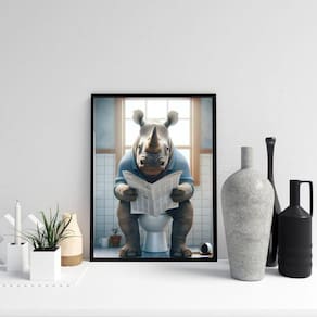 Quadro divertido banheiro - rinoceronte 24x18cm - com vidro Cor: moldura branca Informações do produto tire todas as suas dúvidas no descritivo abaixo: decoração para quarto, sala, cozinha, escritório, área gourmet e muito mais. Chega de paredes vazias medidas - cada peça tem 24x18cm a5 . Material do papel - papel fotográfico brilhante de altíssima resolução acabamento - todos os quadros são acompanhados de vidro para proteção da imagem. - moldura em madeira maciça na cor preta ou branca conforme produto escolhido e pendurador . - os quadros são embalados de forma segura com plástico bolha com camada dupla de acordo com o tamanho dos quadros. Garantia - garantia de 3 meses. Meu quadro chegou. Como posso fixá-lo Você precisa apenas de um martelo e um prego, pois os quadros já vão acompanhados de penduradores. Esta é a forma mais indicada. Como posso limpar meu quadro A limpeza é feita como um móvel comum da sua casa. Apenas um pano seco ou espanador são suficientes para tal