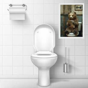 Quadro divertido banheiro ursinho lendo jornal 33x24cm Cor: moldura preta Informações do produto tire todas as suas dúvidas no descritivo abaixo: decoração para quarto, sala, cozinha, escritório, área gourmet e muito mais. Chega de paredes vazias medidas - cada peça tem 33x24cm a4 . Material do papel - papel fotográfico brilhante de altíssima resolução acabamento - todos os quadros são acompanhados de uma película de acetato para proteção da imagem. - os quadros são embalados de forma segura com plástico bolha com camada dupla de acordo com o tamanho dos quadros. Garantia - garantia de 3 meses. Meu quadro chegou. Como posso fixá-lo Você precisa apenas de um martelo e um prego, pois os quadros já vão acompanhados de penduradores. Esta é a forma mais indicada. Caso prefira, você pode utilizar uma fita dupla face neste caso, sugerimos de alta qualidade para evitar que descole e seu quadro caia . Como posso limpar meu quadro A limpeza é feita como um móvel comum da sua casa. Apenas um pano seco ou espanador são suficientes para tal