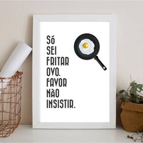 O Quadro Divertido Cozinha Só Sei Fritar Ovo 45x34cm - Vidro é perfeito para decorar sua cozinha com muito estilo e diversão. Com moldura de madeira branca, ele traz um toque especial para qualquer ambiente, seja quarto, sala, escritório, área gourmet e muito mais.