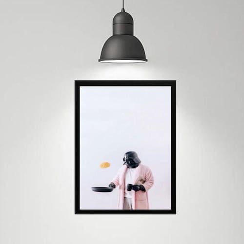 Quadro divertido cozinha darth 24x18cm Moldura: madeira preta Informações do produto tire todas as suas dúvidas no descritivo abaixo: decoração para quarto, sala, cozinha, escritório, área gourmet e muito mais. Chega de paredes vazias medidas - cada peça tem 24x18cm a5 . Material do papel - papel fotográfico brilhante de altíssima resolução acabamento - todos os quadros são acompanhados de uma película de acetato para proteção da imagem. - os quadros são embalados de forma segura com plástico bolha com camada dupla de acordo com o tamanho dos quadros. Garantia - garantia de 3 meses. Meu quadro chegou. Como posso fixá-lo Você precisa apenas de um martelo e um prego, pois os quadros já vão acompanhados de penduradores. Esta é a forma mais indicada. Caso prefira, você pode utilizar uma fita dupla face neste caso, sugerimos de alta qualidade para evitar que descole e seu quadro caia . Como posso limpar meu quadro A limpeza é feita como um móvel comum da sua casa. Apenas um pano seco ou espanador são suficientes para tal