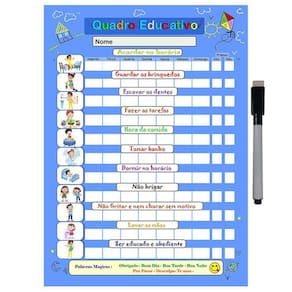 Quadro do Incentivo de Metal Semanal 26x20cm + Caneta Nossos quadros do incentivo são uma ótima opção para você interagir com as crianças e lhes ensinar de uma forma divertida a terem uma rotina organizada de acordo com o seu dia a dia. É feito com material resistente e uma interface lisa possibilitando que você possa apagar e reescrever quantas vezes desejar. utilizar sempre caneta apropriada para quadro branco . Contém: 1 Quadro do incentivo 26x20cm 1 Caneta para quadro branco com apagador e imã na tampa