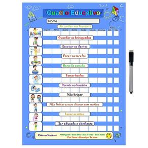 Quadro do Incentivo de Metal Semanal 40x29cm + Caneta Nossos quadros do incentivo são uma ótima opção para você interagir com as crianças e lhes ensinar de uma forma divertida a terem uma rotina organizada de acordo com o seu dia a dia.