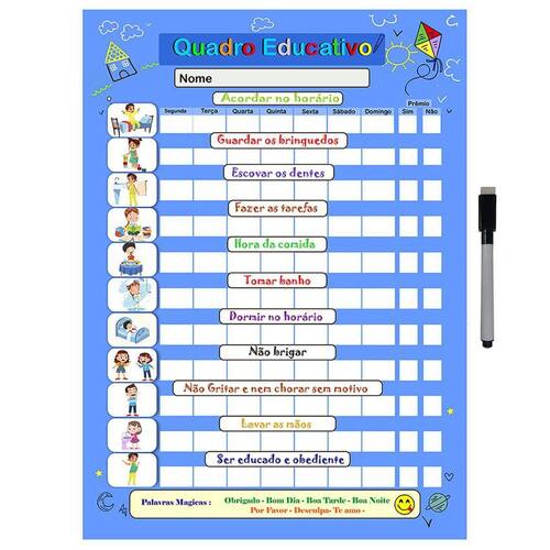 Contém: 1 Quadro do incentivo 40x29cm 1 Caneta para quadro branco com apagador e imã na tampa