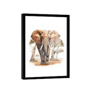 Quadro Elefante Aquarela -- BR ARTES Moldura Preta e Vidro - Grande 118x78 -