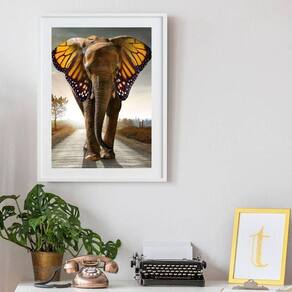 Quadro elefante borboleta - 60x48cm Moldura: madeira branca Informações do produto tire todas as suas dúvidas no descritivo abaixo: decoração para quarto, sala, cozinha, escritório, área gourmet e muito mais. Chega de paredes vazias medidas - cada peça tem 60x48cm . Material do papel - papel fotográfico brilhante de altíssima resolução acabamento - todos os quadros são acompanhados de vidro para proteção da imagem. - moldura em madeira maciça na cor preta ou branca conforme produto escolhido e pendurador. - paspatur branco com 7cm de largura - os quadros são embalados de forma segura com plástico bolha com camada dupla de acordo com o tamanho dos quadros. Garantia - garantia de 3 meses. Meu quadro chegou. Como posso fixá-lo Você precisa apenas de um martelo e um prego, pois os quadros já vão acompanhados de penduradores. Esta é a forma mais indicada. Como posso limpar meu quadro A limpeza é feita como um móvel comum da sua casa. Apenas um pano seco ou espanador são suficientes para tal