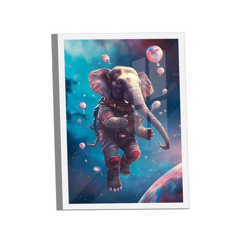Quadro Elefante Espacial -- BR ARTES Moldura Branca e Vidro - Gigante 180x105 -