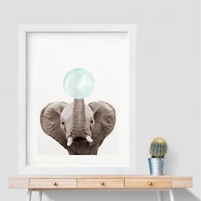 Quadro elefantinho chiclete azul- 60x48cm Moldura: madeira branca Informações do produto tire todas as suas dúvidas no descritivo abaixo: decoração para quarto, sala, cozinha, escritório, área gourmet e muito mais. Chega de paredes vazias medidas - cada peça tem 60x48cm . Material do papel - papel fotográfico brilhante de altíssima resolução acabamento - todos os quadros são acompanhados de vidro para proteção da imagem. - moldura em madeira maciça na cor preta ou branca conforme produto escolhido e pendurador. - paspatur branco com 7cm de largura - os quadros são embalados de forma segura com plástico bolha com camada dupla de acordo com o tamanho dos quadros. Garantia - garantia de 3 meses. Meu quadro chegou. Como posso fixá-lo Você precisa apenas de um martelo e um prego, pois os quadros já vão acompanhados de penduradores. Esta é a forma mais indicada. Como posso limpar meu quadro A limpeza é feita como um móvel comum da sua casa. Apenas um pano seco ou espanador são suficientes para tal