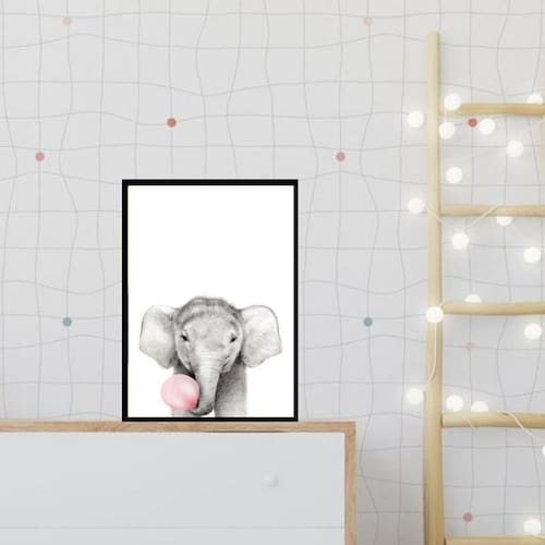 Quadro elefantinho chiclete rosa 24x18cm - com vidro Moldura: madeira preta Informações do produto tire todas as suas dúvidas no descritivo abaixo: decoração para quarto, sala, cozinha, escritório, área gourmet e muito mais. Chega de paredes vazias medidas - cada peça tem 24x18cm a5 . Material do papel - papel fotográfico brilhante de altíssima resolução acabamento - todos os quadros são acompanhados de vidro para proteção da imagem. - moldura em madeira maciça na cor preta ou branca conforme produto escolhido e pendurador . - os quadros são embalados de forma segura com plástico bolha com camada dupla de acordo com o tamanho dos quadros. Garantia - garantia de 3 meses. Meu quadro chegou. Como posso fixá-lo Você precisa apenas de um martelo e um prego, pois os quadros já vão acompanhados de penduradores. Esta é a forma mais indicada. Como posso limpar meu quadro A limpeza é feita como um móvel comum da sua casa. Apenas um pano seco ou espanador são suficientes para tal