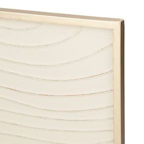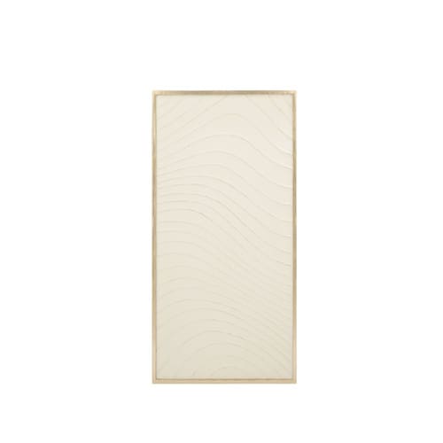 Transforme seu ambiente com a arte sutil e contemporânea do nosso Quadro Decorativo em Metal. Esta peça singular apresenta um design minimalista com um toque orgânico, onde o metal se revela em um tom claro (off-white ou creme suave) com um elegante relevo de linhas onduladas, remetendo à serenidade das dunas ou à delicadeza das ondas. A moldura em um tom dourado ou champanhe discreto adiciona um acabamento sofisticado e luminoso.