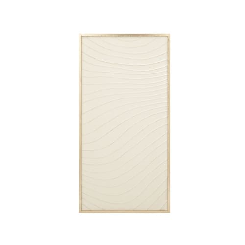 Transforme seu ambiente com a arte sutil e contemporânea do nosso Quadro Decorativo em Metal. Esta peça singular apresenta um design minimalista com um toque orgânico, onde o metal se revela em um tom claro (off-white ou creme suave) com um elegante relevo de linhas onduladas, remetendo à serenidade das dunas ou à delicadeza das ondas. A moldura em um tom dourado ou champanhe discreto adiciona um acabamento sofisticado e luminoso.