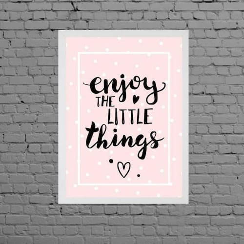 Quadro Enjoy The Little Things - Rosa 24X18Cm Moldura: madeira branca Informações do produto tire todas as suas dúvidas no descritivo abaixo: decoração para quarto, sala, cozinha, escritório, área gourmet e muito mais. Chega de paredes vazias medidas - cada peça tem 24x18cm a5 . Material do papel - papel fotográfico brilhante de altíssima resolução acabamento - todos os quadros são acompanhados de uma película de acetato para proteção da imagem. - moldura em madeira maciça na cor branca e pendurador móvel que pode ser retirado facilmente caso deseje fixar com fita dupla face. - os quadros são embalados de forma segura com plástico bolha com camada dupla de acordo com o tamanho dos quadros. Marca: Não Informado