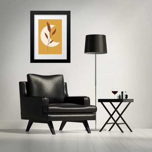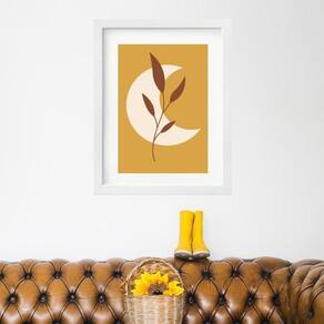 Quadro escandinavo lua folha mostarda- 60x48cm Cor: moldura branca Informações do produto tire todas as suas dúvidas no descritivo abaixo: decoração para quarto, sala, cozinha, escritório, área gourmet e muito mais. Chega de paredes vazias medidas - cada peça tem 60x48cm . Material do papel - papel fotográfico brilhante de altíssima resolução acabamento - todos os quadros são acompanhados de vidro para proteção da imagem. - moldura em madeira maciça na cor preta ou branca conforme produto escolhido e pendurador. - paspatur branco com 7cm de largura - os quadros são embalados de forma segura com plástico bolha com camada dupla de acordo com o tamanho dos quadros. Garantia - garantia de 3 meses. Meu quadro chegou. Como posso fixá-lo Você precisa apenas de um martelo e um prego, pois os quadros já vão acompanhados de penduradores. Esta é a forma mais indicada. Como posso limpar meu quadro A limpeza é feita como um móvel comum da sua casa. Apenas um pano seco ou espanador são suficientes para tal