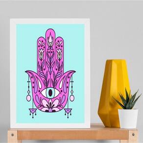 Quadro esotérico olho grego com hamsa 33x24cm - com vidro Cor: moldura preta Informações do produto tire todas as suas dúvidas no descritivo abaixo: decoração para quarto, sala, cozinha, escritório, área gourmet e muito mais. Chega de paredes vazias medidas - cada peça tem 33x24cm a4 . Material do papel - papel fotográfico brilhante de altíssima resolução acabamento - todos os quadros são acompanhados de vidro para proteção da imagem. - moldura em madeira maciça na cor preta ou branca conforme produto escolhido e pendurador . - os quadros são embalados de forma segura com plástico bolha com camada dupla de acordo com o tamanho dos quadros. Garantia - garantia de 3 meses. Meu quadro chegou. Como posso fixá-lo Você precisa apenas de um martelo e um prego, pois os quadros já vão acompanhados de penduradores. Esta é a forma mais indicada. Como posso limpar meu quadro A limpeza é feita como um móvel comum da sua casa. Apenas um pano seco ou espanador são suficientes para tal