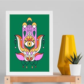 Quadro esotérico olho grego hamsa - verde 24x18cm - com vidro Cor: moldura preta Informações do produto tire todas as suas dúvidas no descritivo abaixo: decoração para quarto, sala, cozinha, escritório, área gourmet e muito mais. Chega de paredes vazias medidas - cada peça tem 24x18cm a5 . Material do papel - papel fotográfico brilhante de altíssima resolução acabamento - todos os quadros são acompanhados de vidro para proteção da imagem. - moldura em madeira maciça na cor preta ou branca conforme produto escolhido e pendurador . - os quadros são embalados de forma segura com plástico bolha com camada dupla de acordo com o tamanho dos quadros. - de 3 meses. Meu quadro chegou. Como posso fixá-lo Você precisa apenas de um martelo e um prego, pois os quadros já vão acompanhados de penduradores. Esta é a forma mais indicada. Como posso limpar meu quadro A limpeza é feita como um móvel comum da sua casa. Apenas um pano seco ou espanador são suficientes para tal Ean: 7891234543516