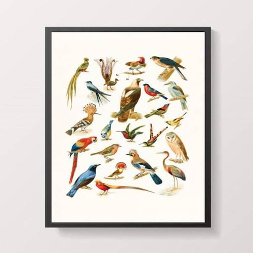Quadro Espécies De Passarinhos 45X34 Com Vidro Moldura Preta