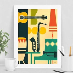 Decore seu espaço com o Quadro Estampa Instrumentos Musicais. Com medidas de 24x18cm, esse quadro é perfeito para dar um toque especial em qualquer ambiente, seja quarto, sala, cozinha, escritório, área gourmet e muito mais.