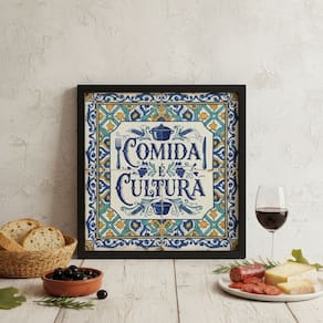 Quadro Estilo Azulejo Comida é Cultura 33x33cm Mold Branca Vidro