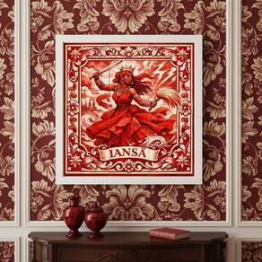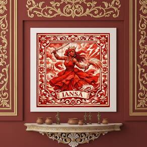 Quadro Estilo Azulejo Iansã 33x33cm Mold Preta Vidro