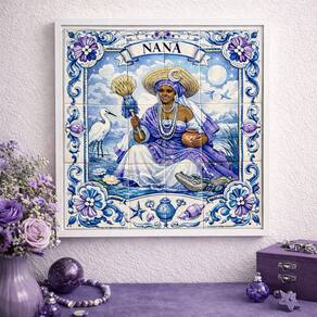 Quadro Estilo Azulejo Nanã 33x33cm Mold Preta