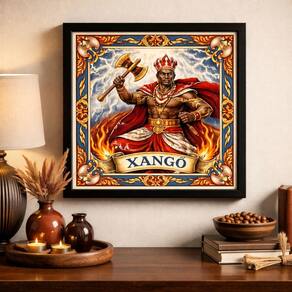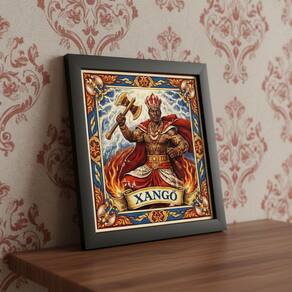 Quadro Estilo Azulejo Orixá Xangô 33x33cm Mold Preta