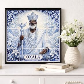 Quadro Estilo Azulejo Oxalá 33x33cm Mold Preta Vidro