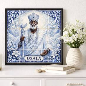 Quadro Estilo Azulejo Oxalá 33x33cm Mold Preta
