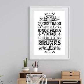 Quadro eu tô do lado das bruxas - 60x48cm Moldura: madeira preta Informações do produto tire todas as suas dúvidas no descritivo abaixo: decoração para quarto, sala, cozinha, escritório, área gourmet e muito mais. Chega de paredes vazias medidas - cada peça tem 60x48cm . Material do papel - papel fotográfico brilhante de altíssima resolução acabamento - todos os quadros são acompanhados de vidro para proteção da imagem. - moldura em madeira maciça na cor preta ou branca conforme produto escolhido e pendurador. - paspatur branco com 7cm de largura - os quadros são embalados de forma segura com plástico bolha com camada dupla de acordo com o tamanho dos quadros. Garantia - garantia de 3 meses. Meu quadro chegou. Como posso fixá-lo Você precisa apenas de um martelo e um prego, pois os quadros já vão acompanhados de penduradores. Esta é a forma mais indicada. Como posso limpar meu quadro A limpeza é feita como um móvel comum da sua casa. Apenas um pano seco ou espanador são suficientes para tal